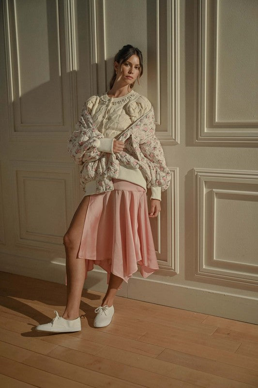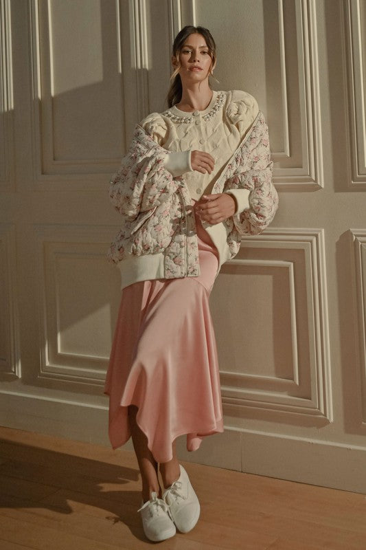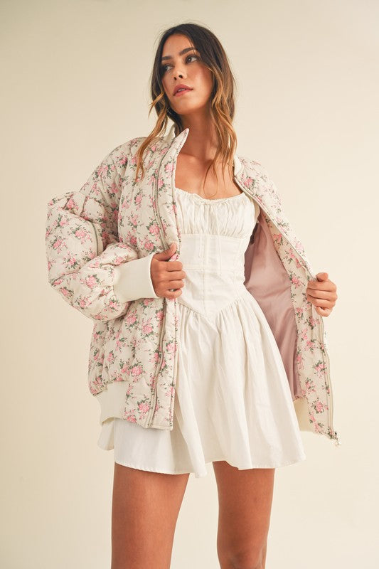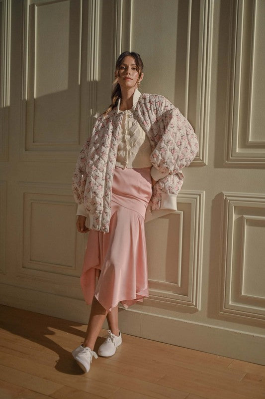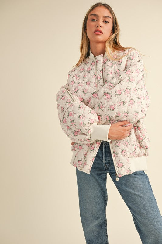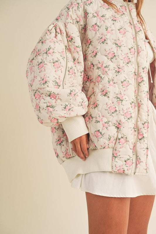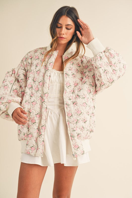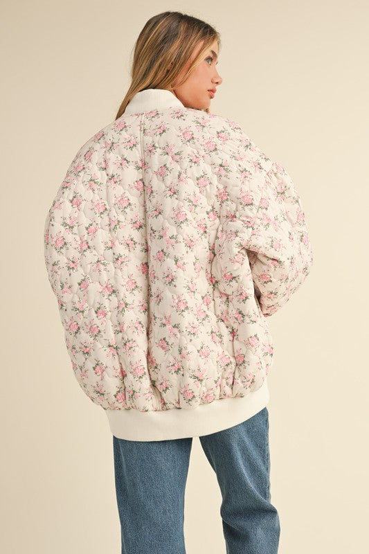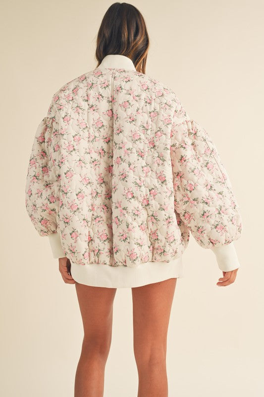 CHARLOTTE FLORALPINK PRINT QUILTED OVERSIZED BOMBER JACKET