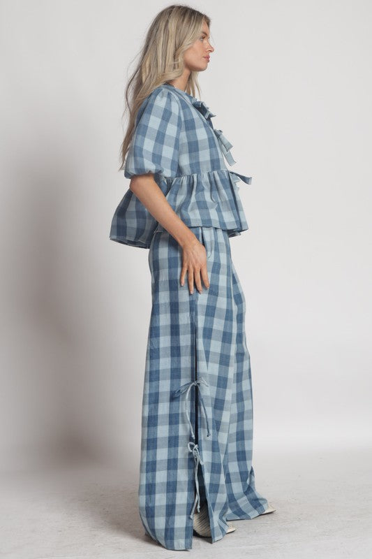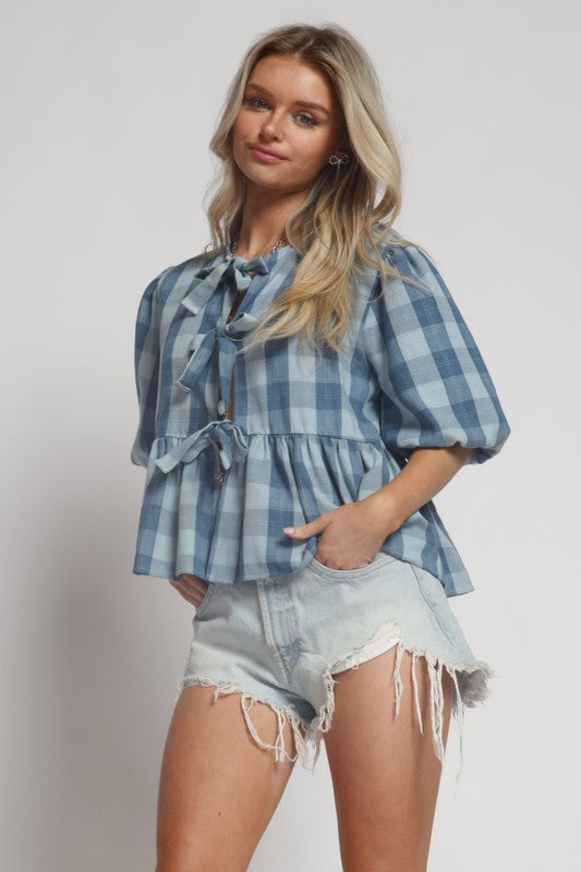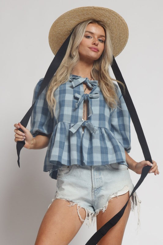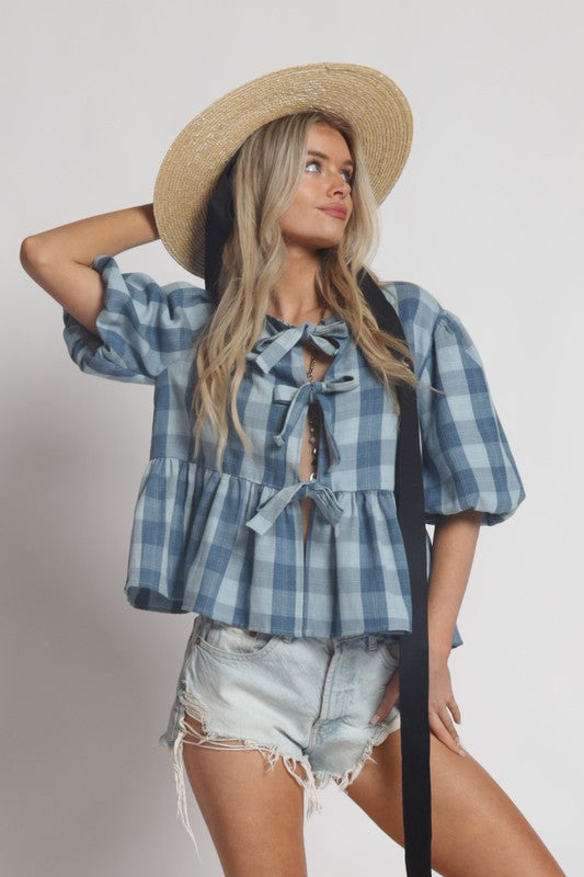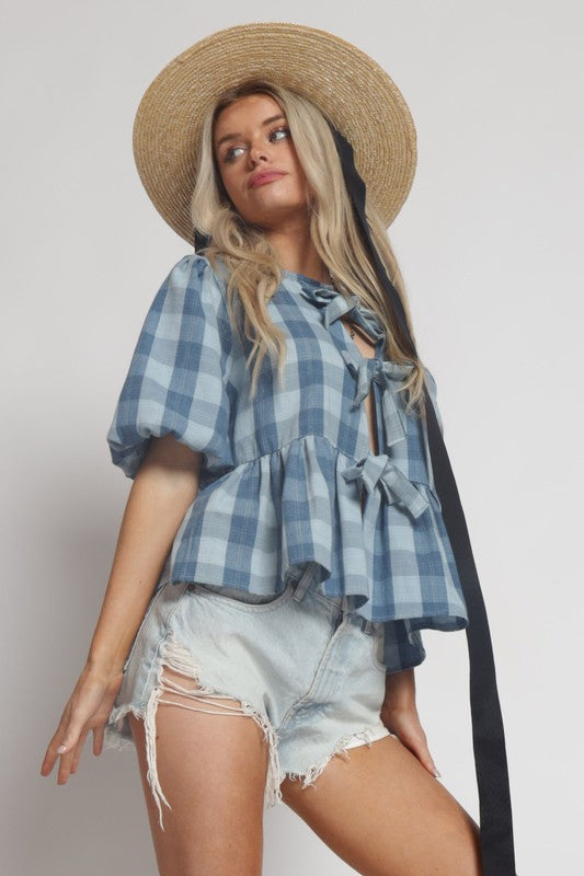 CINDY PLAID TIE FRONT TOP
