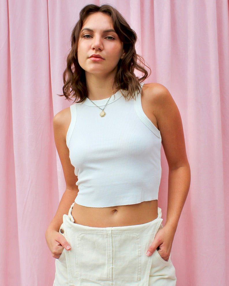 The Everyday Tank is just your basic soft cropped tank. It features a racerback style and ribbed fabric. Pair this item with anything and everything in your closet!
