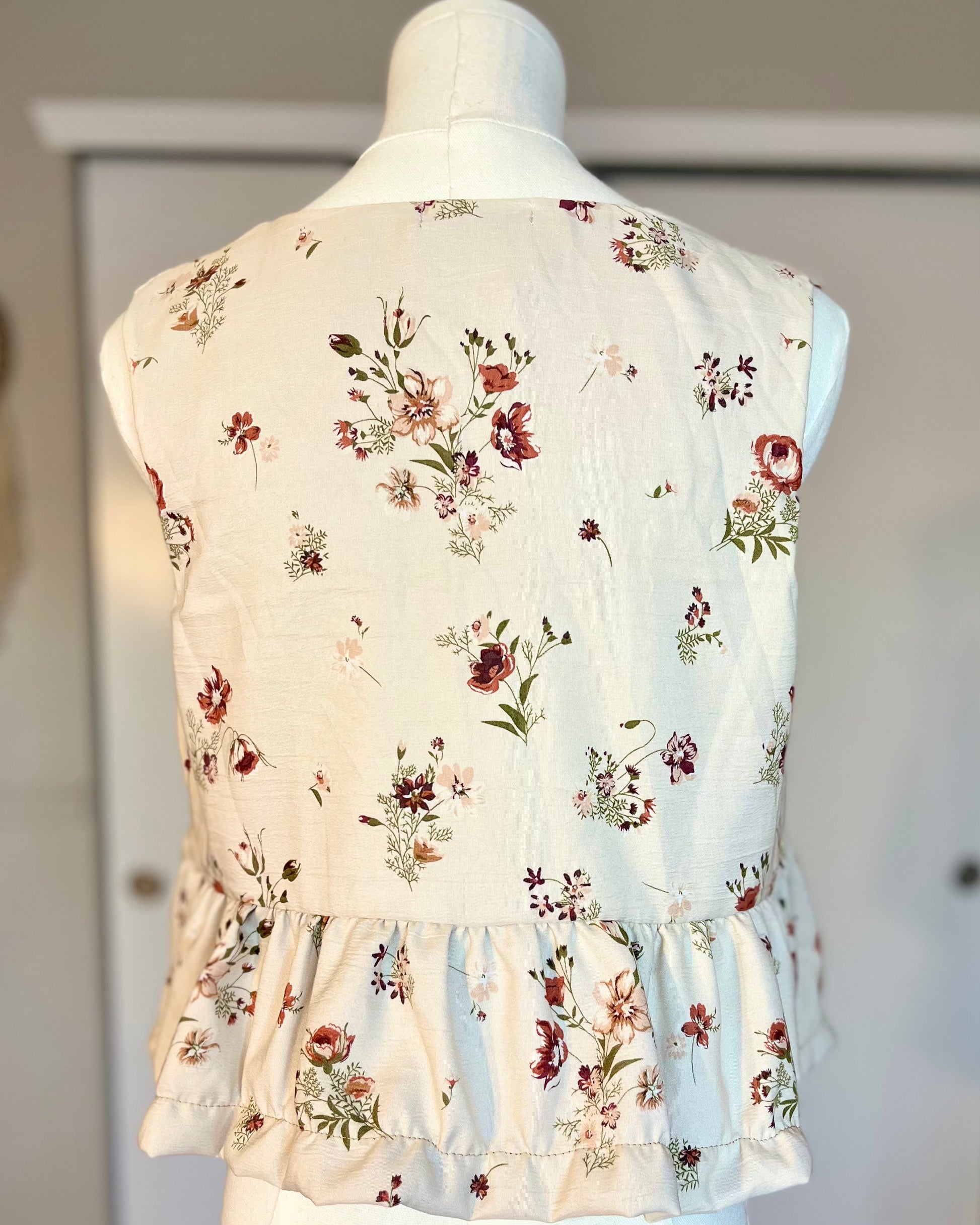 HAND-SEWN VINTAGE FLORAL PEPLUM TOP WITH BOWS