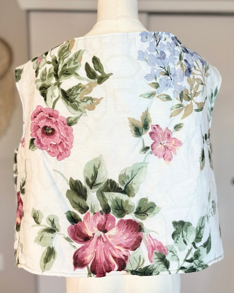 HAND-SEWN VINTAGE FLORAL QUILTED VEST WITH HEARTS & BOWS
