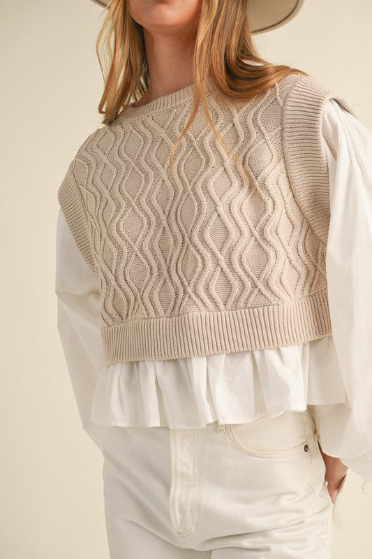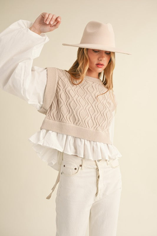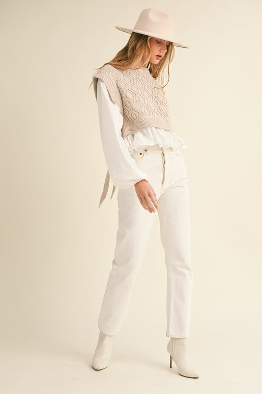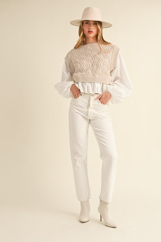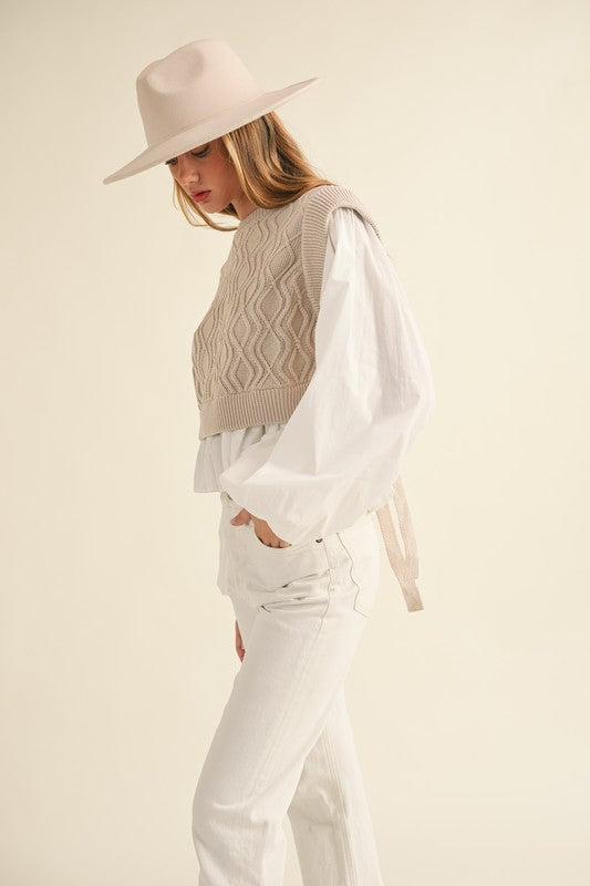 LAYLA BALLOON SLEEVE TOP WITH ATTACHED VEST