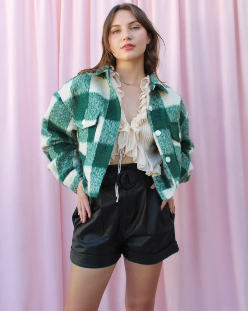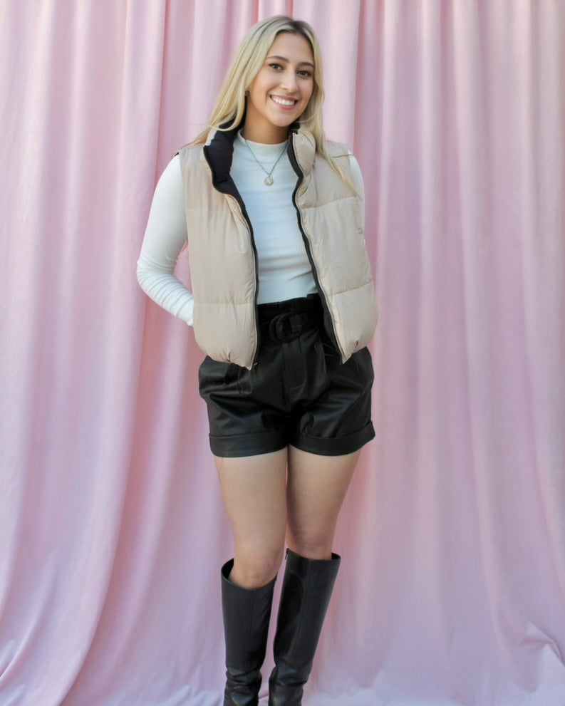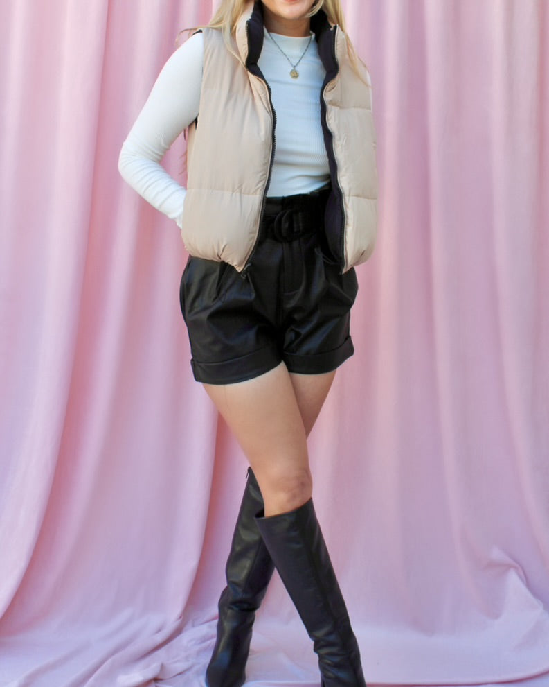 The Phoenix High-Waisted Pleather Shorts are a MUST HAVE for fall! Pair them with any corset, button up, or blouse of your choice. Our favorite thing to do is wear these pleather shorts with knee high boots for a chic and sexy look. It features a pleather material that is durable and a buckle belt.