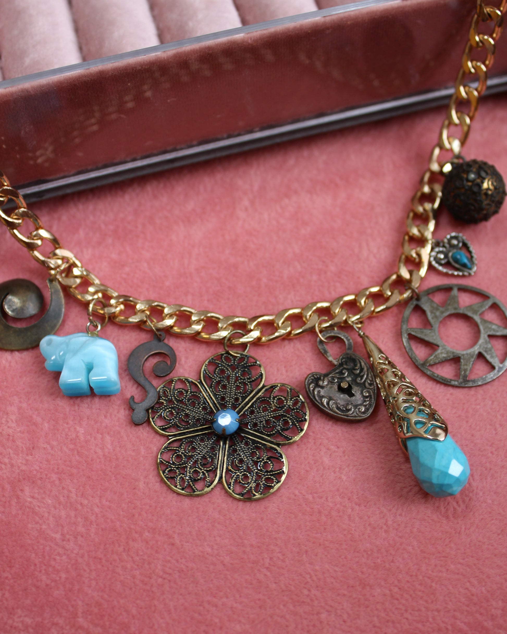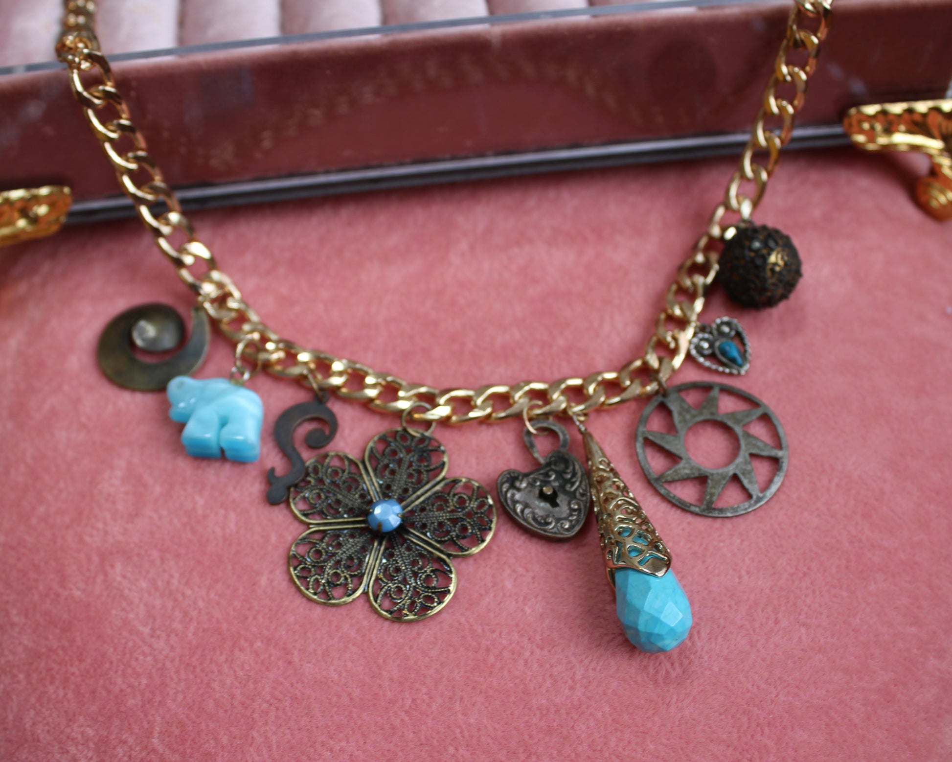 Charms are vintage and the chain is gold dipped.