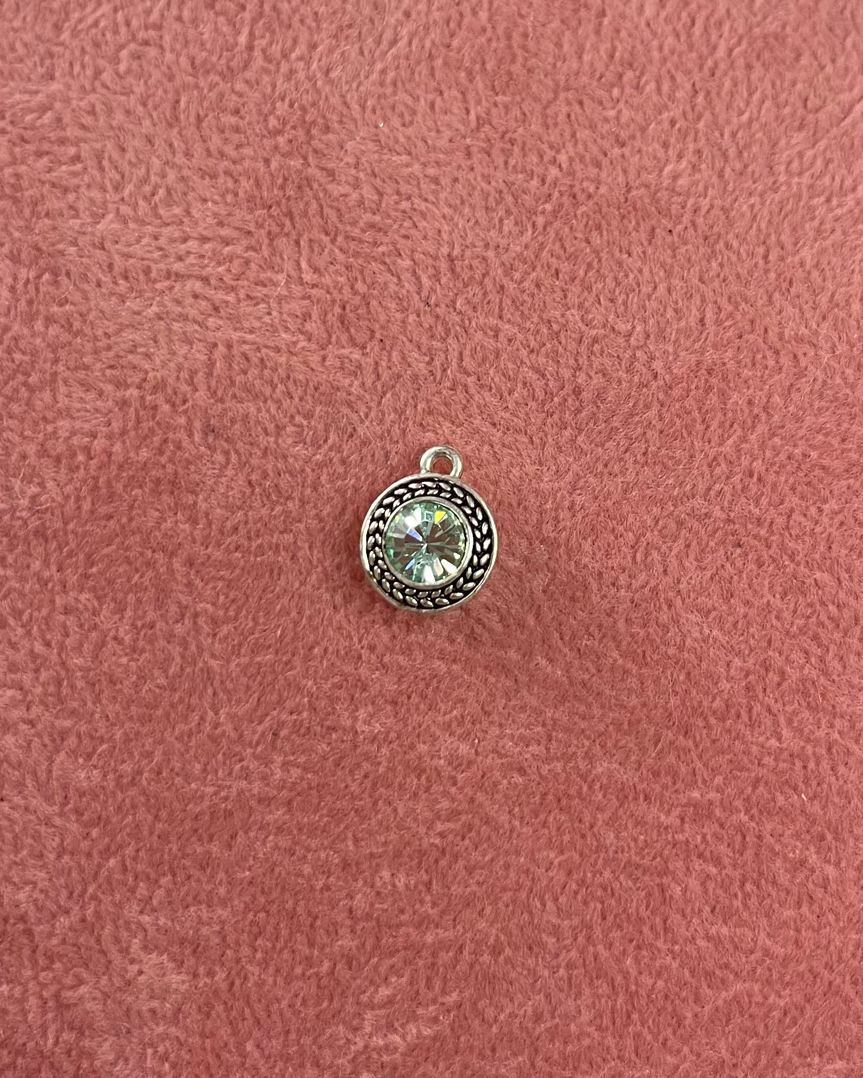 Turquoise Crystal Circle Silver Charm
